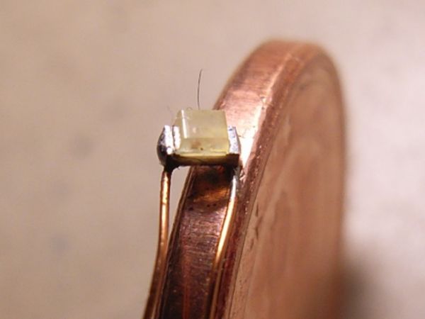 Und noch ein Bild von mir, zu sehen 1Cent, At Tiny13 20ssi und eine SMD LED Bauform 0603: MfG