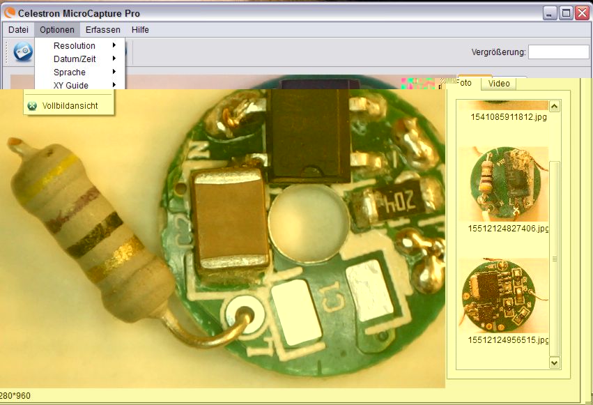 Filamentstab und Platinen sind mit dem USB-Mikroskop fotografiert. Den relativ geringen Preis des Mikroskops merkt man allerdings an der Qualität der Fotos. Die müssen grundsätzlich nachbearbeitet werden.