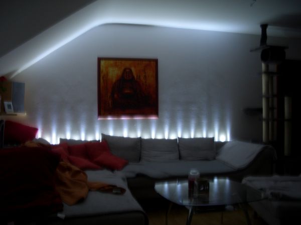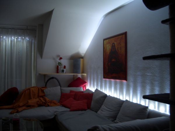 in echt fällt die Leiste hinter dem Sofa überhaupt nicht auf...da ich sie von der Höhe versetzt zum sofa an der Mauer angebracht habe....hier das ganze in Action :roll: :roll: