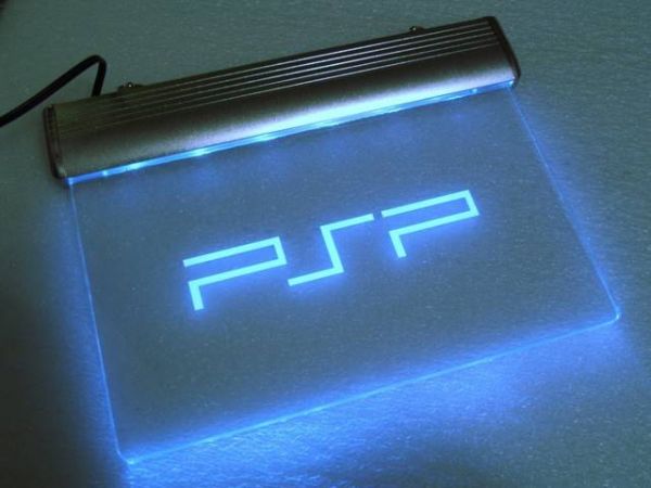 Das mit dem PSP-Schriftzug kann man in das Plexiglas rein gravieren, schleifen, sandstrahlen oder seit neuem mit Laser gravieren.