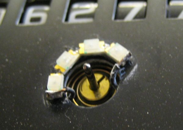 Die beleuchteten Tachonadeln (von einem Seat Leon) werden mit je 4 SMD-LED´s beleuchtet.
