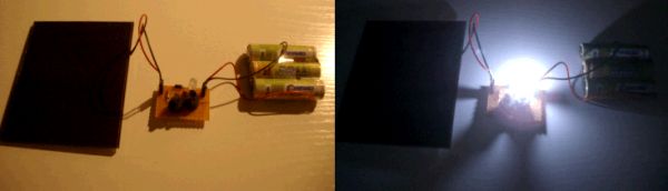 ich habe deine erste Schaltung nachgebaut, da C.. nicht genau das gleiche Solar-Panel, wie vorgeschlagen hatte, habe ich eine stärkere Version genommen, um auch die drei 1,2 Volt 2100 mA Akkus zu laden. Ich teste gerade die 0,5 Watt LED wie lange die Akkus durchhalten.