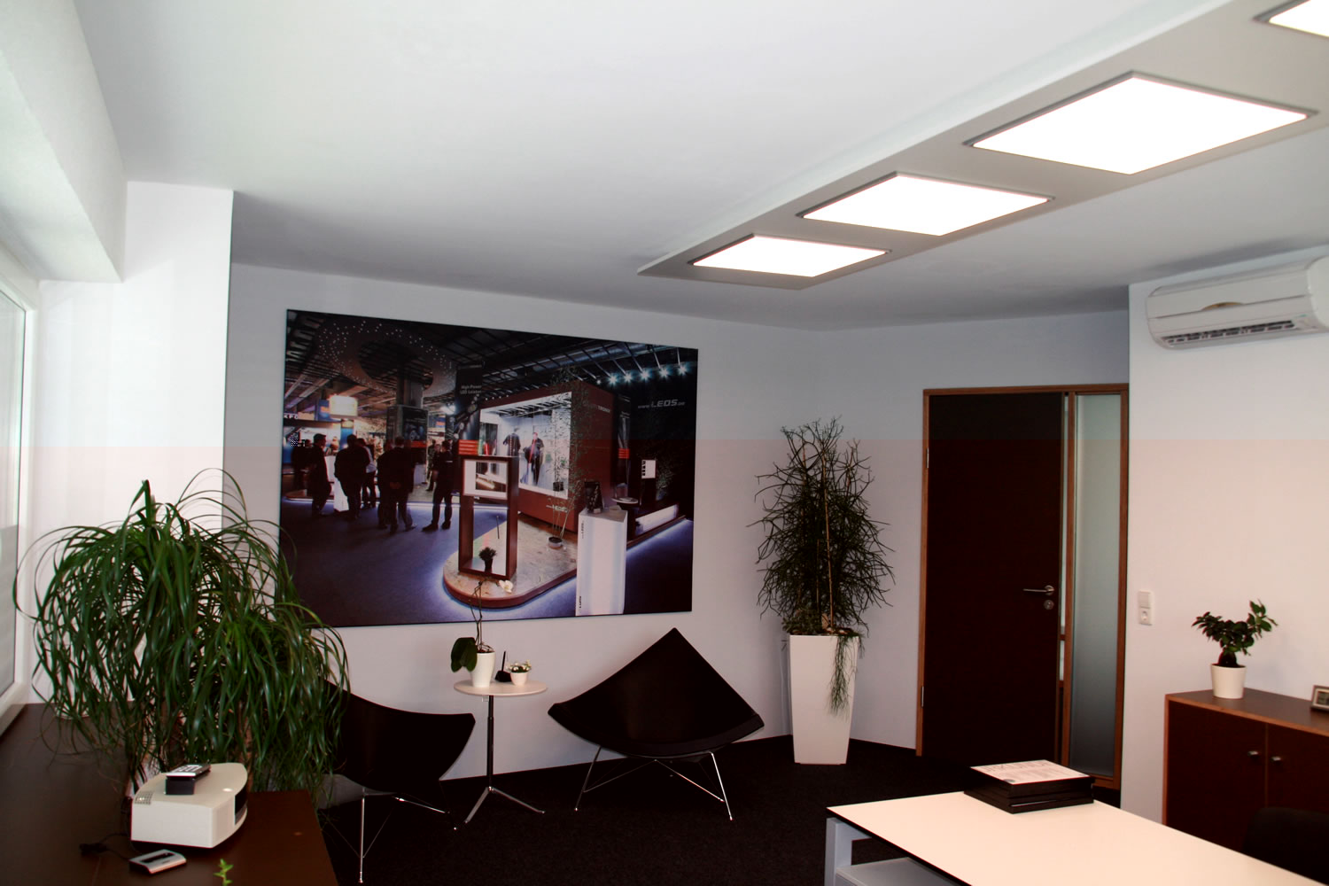 Hier dann mal noch ein neuer, kleiner Einblick ins neue Büro in der obersten Etage: insgesamt wurden dort oben 8 Panels 60*60cm warmweiß im Großraumbüro installiert, sieht besonders abends dann schon genial aus, wenn man z.B. mal vom Parkplatz unten hoch schaut...