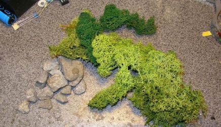 x 	Moos( gibts in jeden gut Sortierten Baumarkt in der Bastel und Deko abteilung) 	- 	- 	Dekorationsbedarf ?