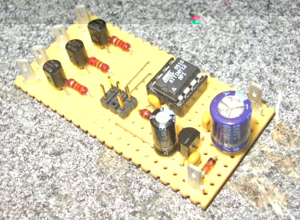 Die Schaltung kann man recht klein aufbauen, bei mir ist das ganze etwa 60mm x 30mm groß geworden.