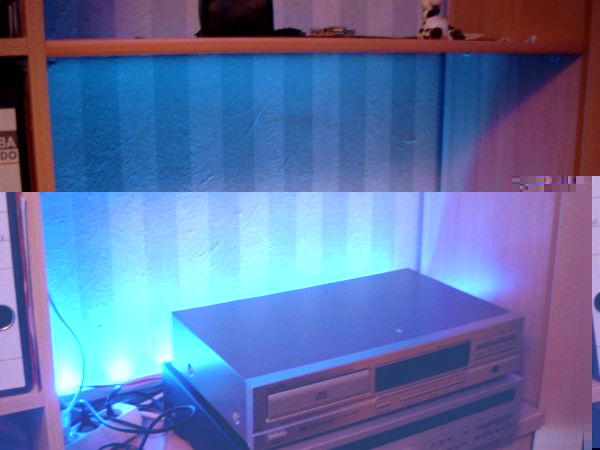 Desshalb habe ich mich entschieden alle Ecken des Zimmers mit blauen LEDs zu beleuchten.