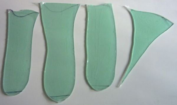 die geschnittenen teile, daneben das zarte maschinchen zum abschnippeln. tipp, beim acryl-schneiden kann