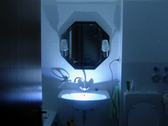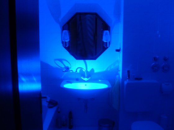 Wenn Du alles in Hartwachs vergießt, oder in transparentem Silikon einläßt, kannst Du es ja im Waschbecken lassen, sozusagen als Abfluß-Beleuchtung! :D